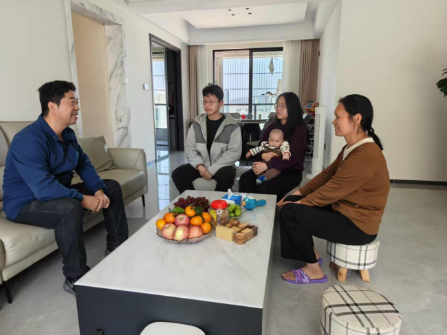 研究生邝智东家中开展家访。石宇杰与学生家长亲切交谈,深入了解学生的成长环境和家庭氛围,并表示家校联动是学校三全育人的重要环节,学院将持续关注学生成长需求,助力学生将专业知识转化为服务乡村发展的实际能力。
