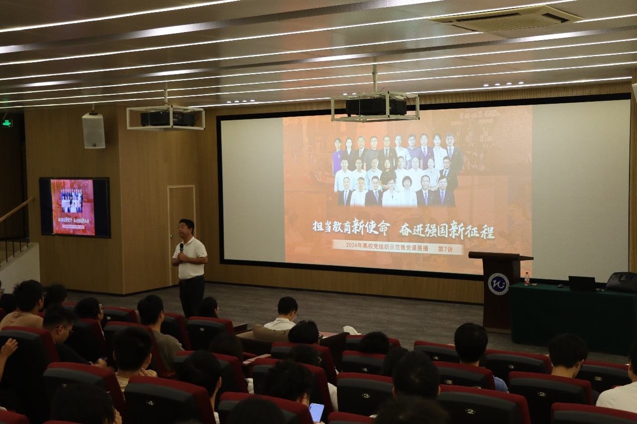 组织师生党员、团员共130余人在理学馆学术报告厅集中学习了由教育部思想政治工作司主办,教育部宣传教育中心承办的“担当教育新使命,奋进强国新征程”2024年高校党组织示范微党课展播第7讲。本期微党课的主题为“牢记光荣使命践行高校担当,为网络强国建设注入澎湃力量”。