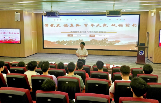 党委副书记石宇杰以“学党史,悟真知,百年大党,砥砺前行”为题,结合陈延年、雷锋、黄文秀等优秀党员模范事迹和自己在脱贫攻坚战中的亲身经历,带领学员们学习党的百年奋斗重大成就和历史经验并讨论了中国共产党百年历史上的三大历史决议,叮嘱学员要把基础知识学扎实,做基础型人才,也要争取投身到尖端芯片设计中。