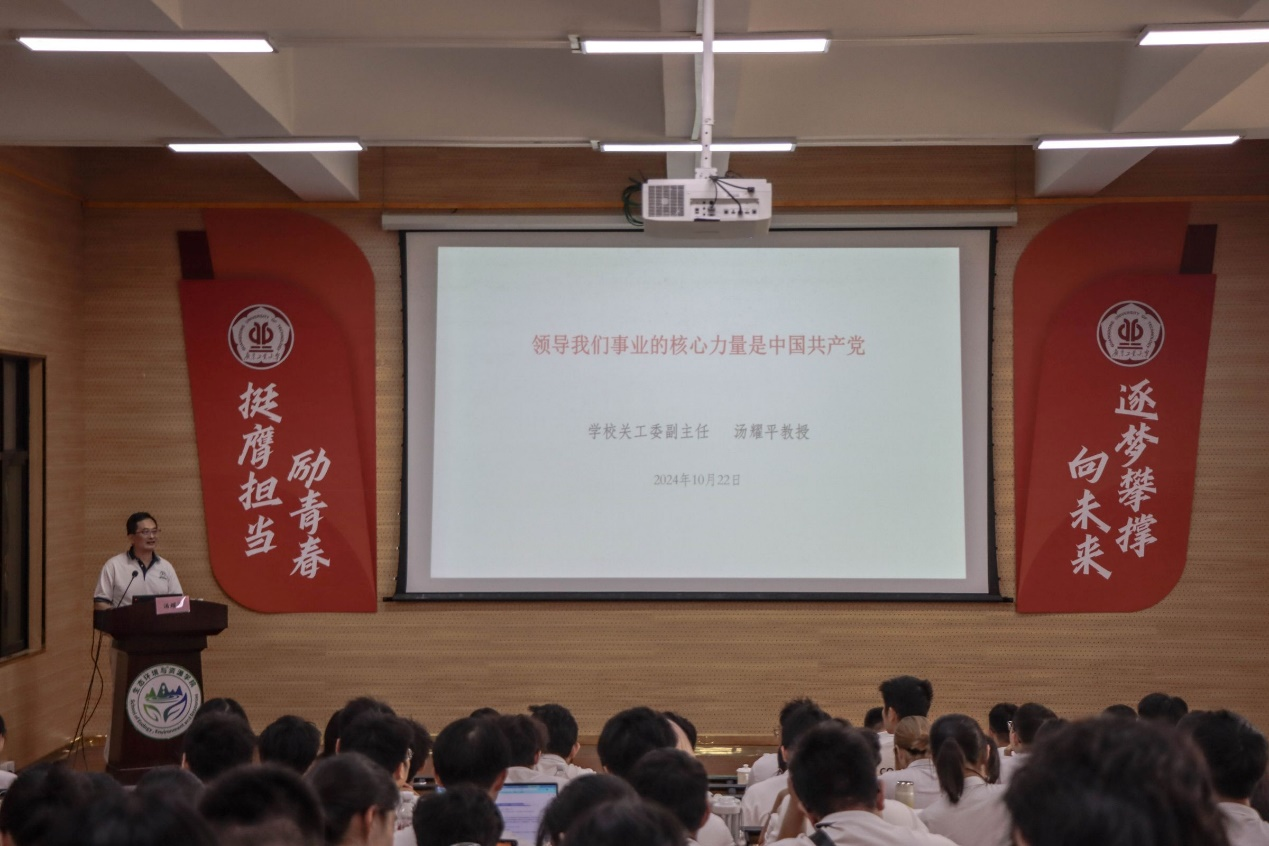 随后,汤教授为积极分子们讲解了中国特色社会主义制度体系的显著优势。他表示,中国特色社会主义在短短几十年内实现了经济发展、国家富强两大奇迹,有力地阐释了党的领导是推进国家治理体系和治理能力现代化的根本保障。中国特色社会主义制度的最大优势是中国共产党的领导,希望同学们能自觉听党话、跟党走,努力成长为堪当民族复兴重任的时代新人。
