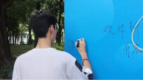 宿舍楼下,伴随着新生的欢声笑语,我院的芯光起航板成为一道亮丽的风景线。学院特地在迎新志愿点设置了两个打卡点位,同学们纷纷与家长在此处留下进入大学的第一张合影,定格每一张青春洋溢的面孔、每一个美好灿烂的微笑,在这里见证与学院的初见,把首次步入大学校园的喜悦分享给身边最亲近的人。