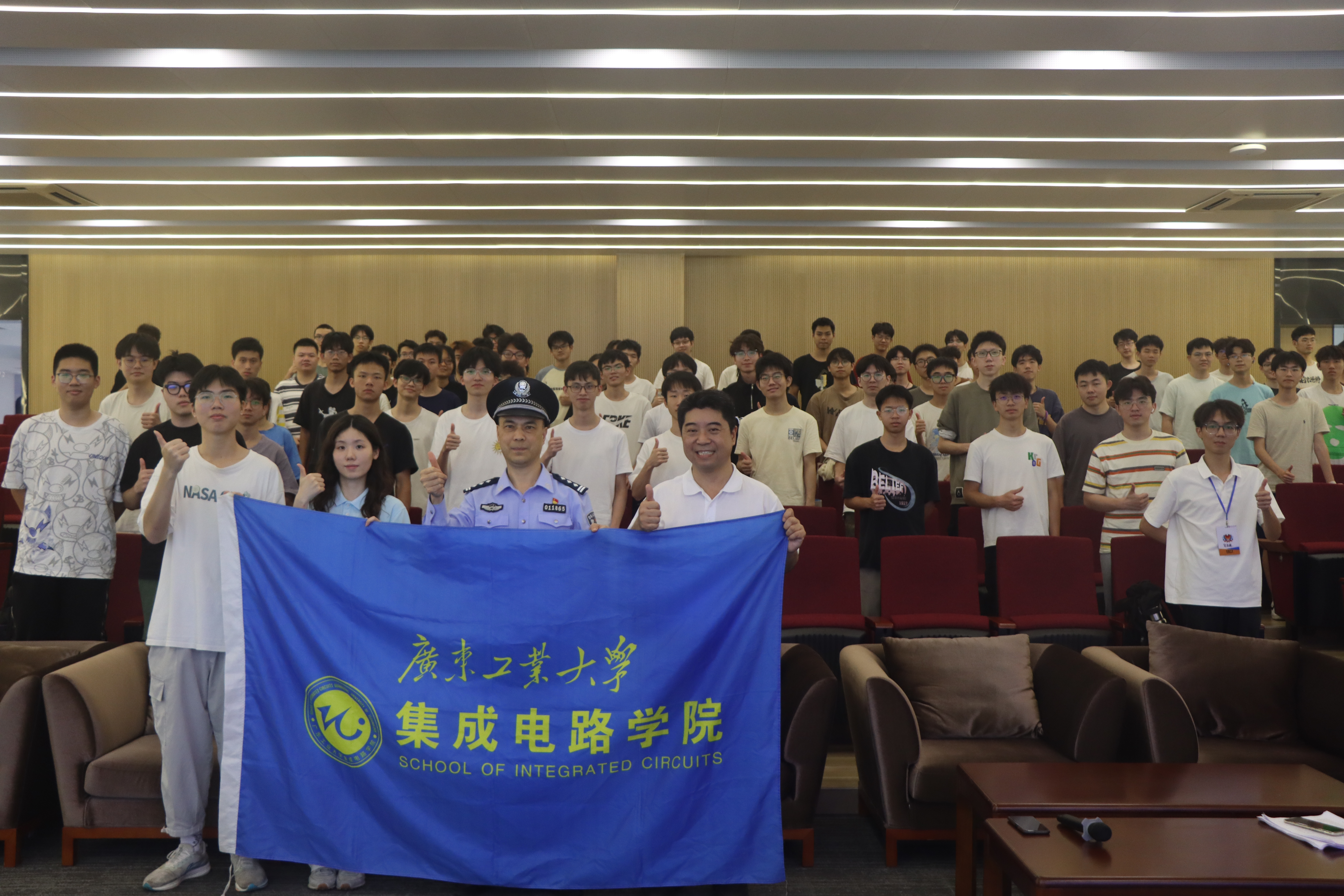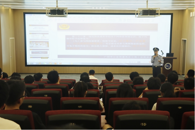 特邀请小谷围派出所驻校民警陈林群警官、学校校园安全宣讲队队员郭怡辉同学开展校园安全教育讲座,学院党委副书记石宇杰、辅导员郭汶林、学生骨干以及100余名本科生参加了此次活动。