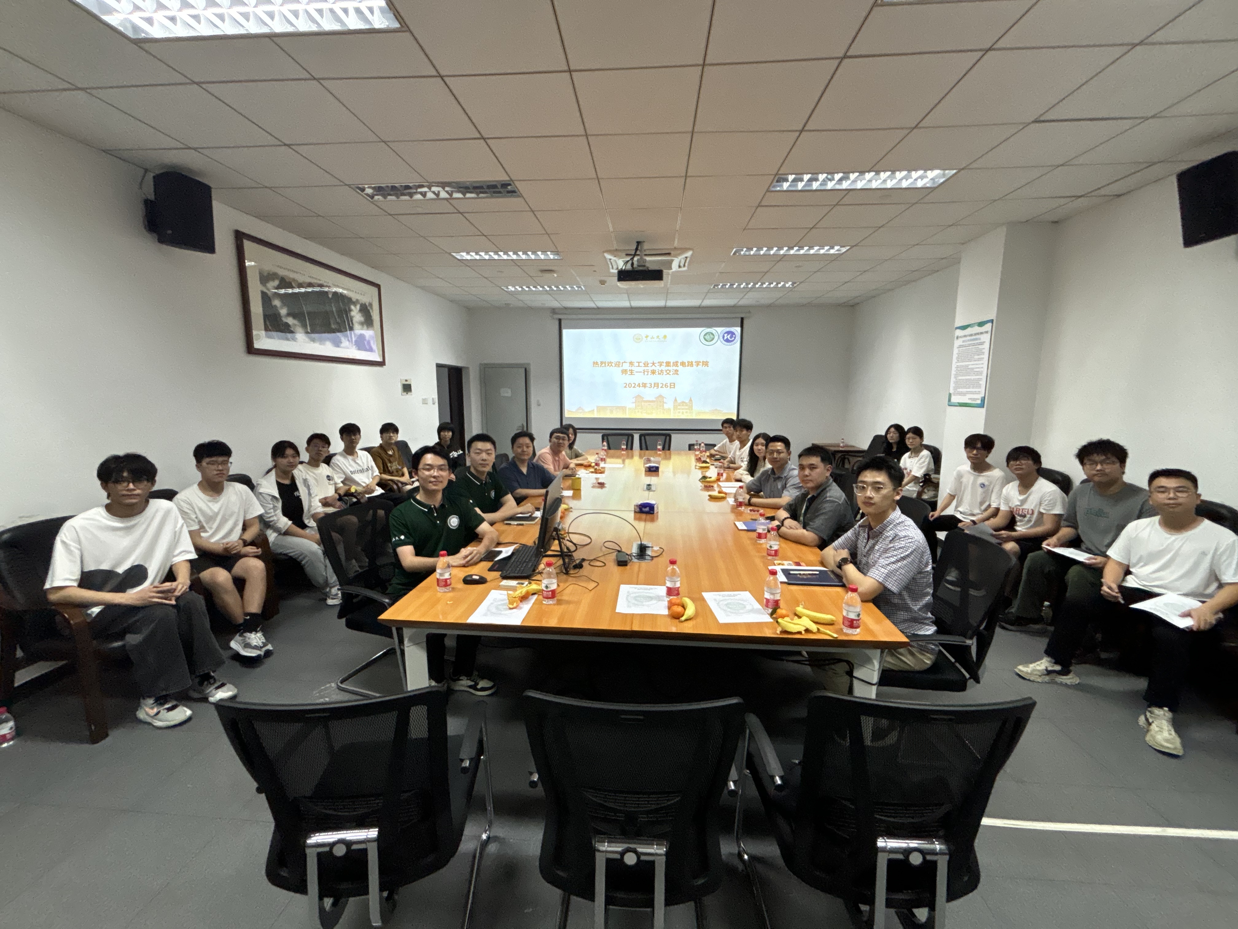 团委学生会指导老师李秉寰、郭汶林老师带领团委学生会骨干成员赴中山大学电子与信息工程学院 (微电子学院)团委及学生会调研交流,中山大学电子与信息工程学院团委副书记林玥琪老师、学生会秘书长张思睿老师以及团委、学生会骨干成员参加了交流会。