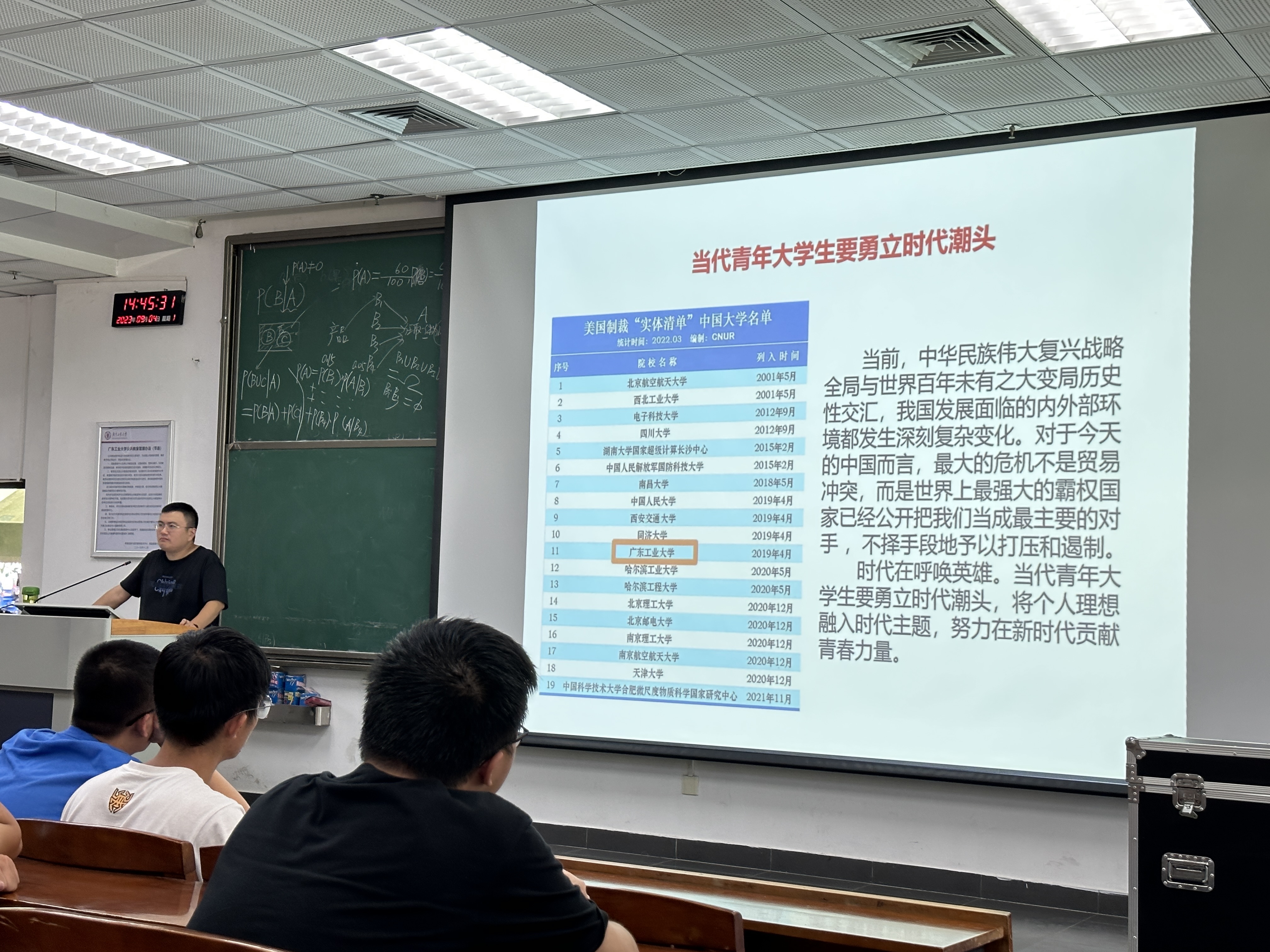 洪伟老师以“以梦为马 不负韶华 让青春在新时代绽放绚丽光彩”为主题,具体围绕“胸怀‘国之大者’ 担当使命任务”、“锤炼品德修为 练就过硬本领”、“以学习筑牢人生之基 以思考点亮成长之路”三个方面谆谆教诲。洪伟老师联系国内外严峻的大环境,以我校知名教授张启人先生为爱党爱国的表率、以东深供水工程建设中的“广工人”为团结勤奋的榜样,号召当代青年大学生在百年未有之大变局勇立时代潮头,树立理想信念,贡献青春力量。