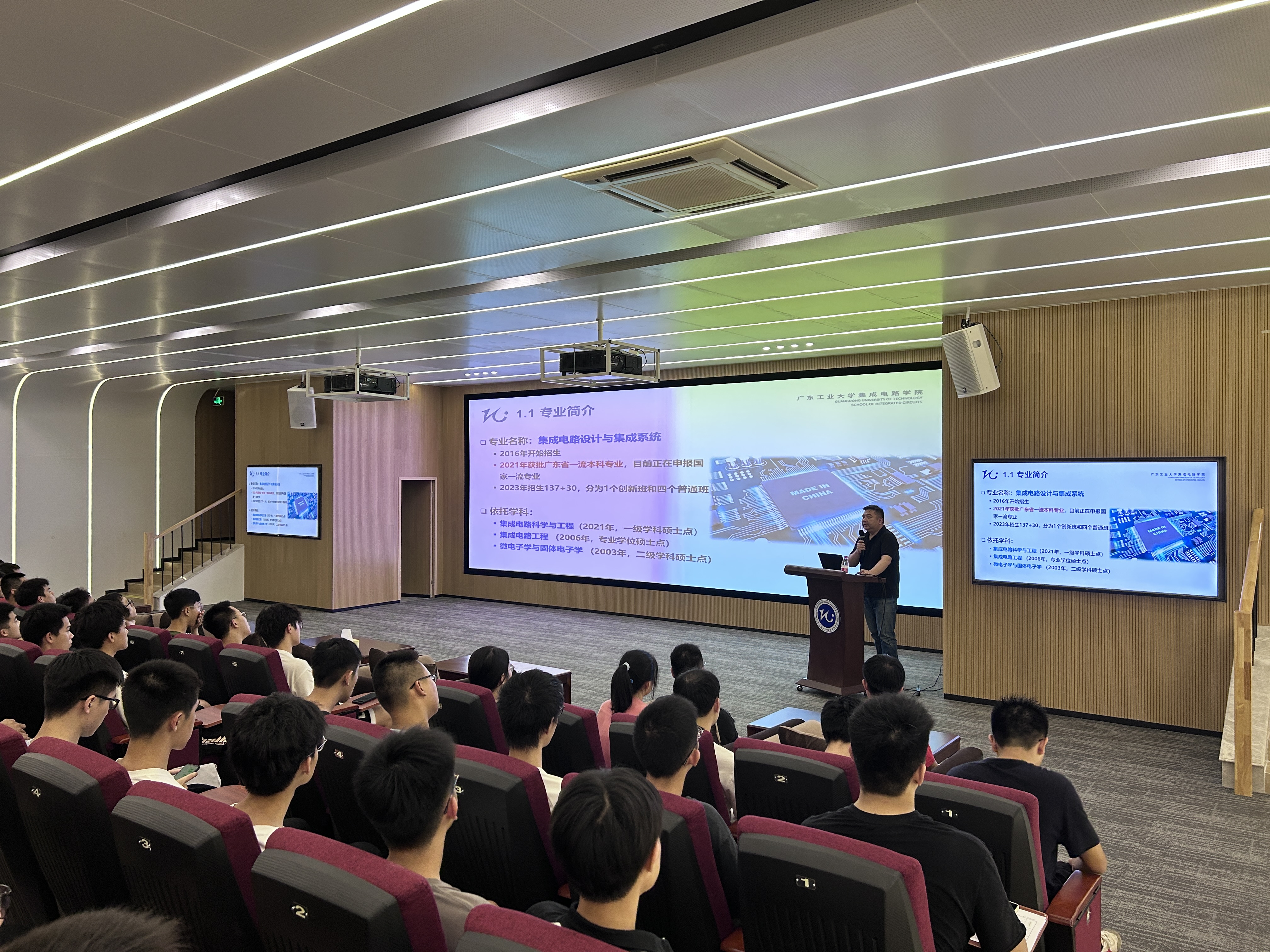 首先,余凯老师向集成专业的同学们耐心讲解了基础专业课程设置,推荐了优质的自学资源。接着,他带领新生认识了学院优秀的教师团队,介绍了各种学科竞赛,拉近了学生们与专业的距离,让他们感受到集成电路这一庞大领域的魅力与无限潜力。最后,余凯老师结合国际形势深入分析了专业需求与前景,让同学们对未来的职业生涯规划提供了一盏明灯。