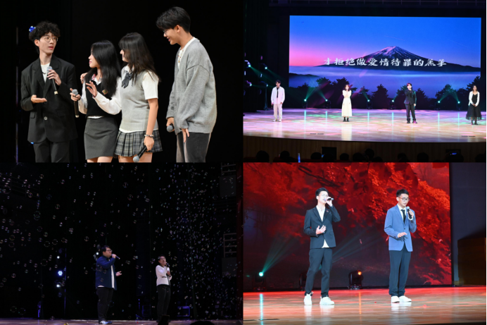 月华如水,歌声悠扬,第二篇章“灵韵开新章”在歌曲《Free Loop》中缓缓开启,歌声激发着观众的情感共鸣,鼓励人们勇敢地去追寻自己的内心所向,摆脱现实的困境和束缚;舞蹈《Hey!Hey!》在欢快的节奏带领同学们尽情领略校园时光的青春洋溢与朝气蓬勃;《Stuck In The Middle》唱响了成长的道路上置身两难境地的迷茫和纠结,也启示着同学们勇于走出舒适区,寻找应对困难的出路;说唱《玛瑙》用鼓舞人心的词句辅以充满张力的旋律诉说着青年学子一往无前、无所畏惧的精神风貌;舞蹈《Shooting Star》紧跟音乐的节奏,每一次转身、跳跃都精准有度、张弛有力,瞬间点燃了现场的气氛。