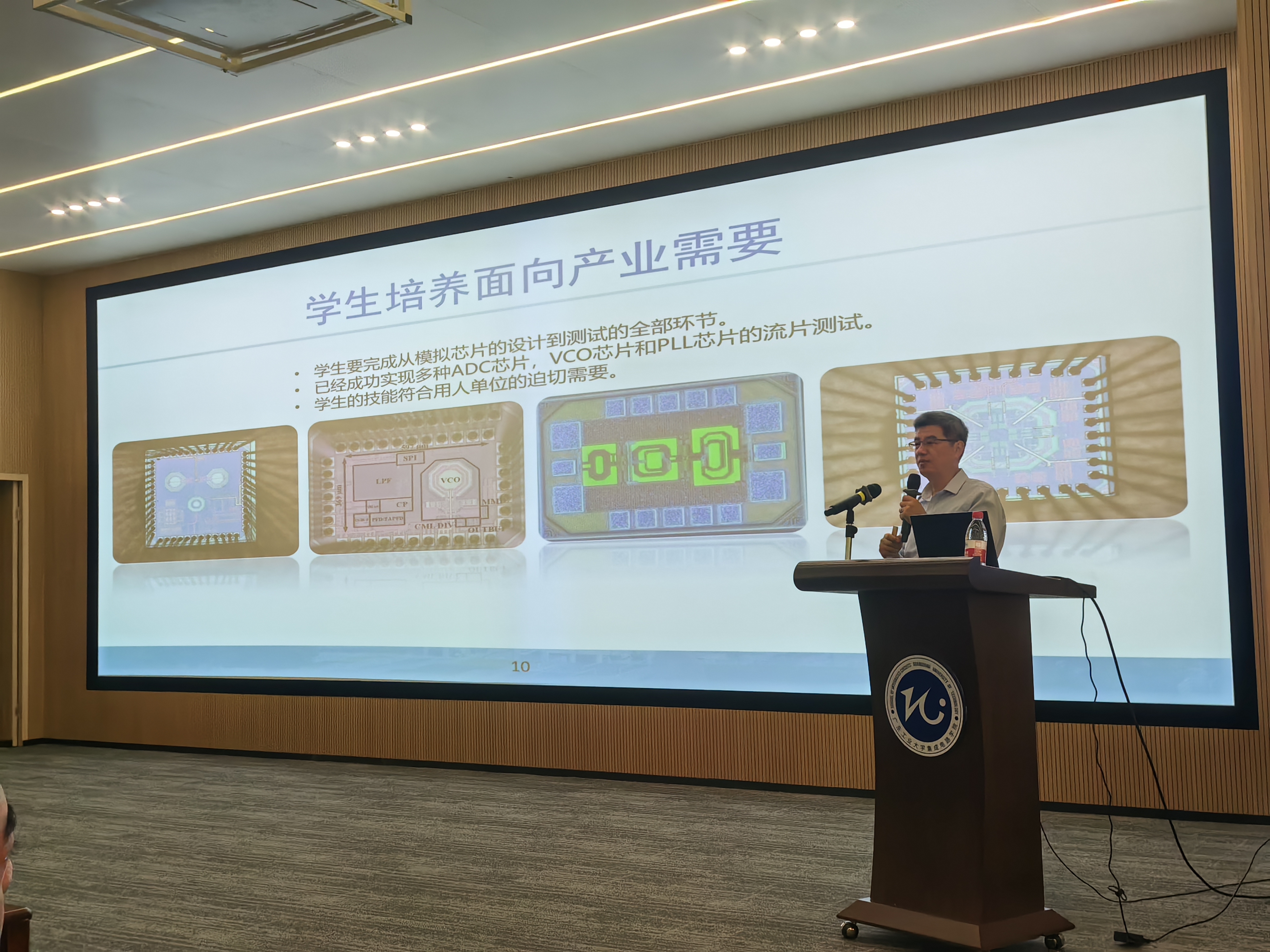 随后,郭春炳教授作为研究生导师代表发言,他希望新生们能够在人生新征程中“迈向新台阶,迎接“芯”的挑战”。郭教授详细介绍了中国集成电路行业的发展现状与应用前景,激励同学们牢牢抓住集成电路行业的现实机遇,快速找准自己的定位和方向,在扎实学习基础知识的同时做到知行合一、融会贯通,努力提高自己的实践动手能力,迎接挑战,奋勇向前。