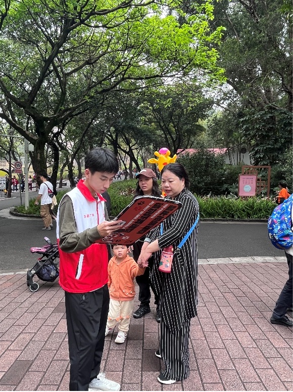 学生党建工作指导中心全体成员走进广州动物园开展志愿服务活动,为游客提供贴心的引导服务。