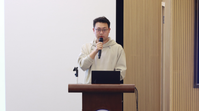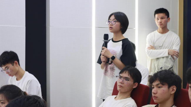 活动还邀请到往届参赛学生进行备赛经验分享。2024年集创赛全国三等奖得主黄义凯以龙芯杯为例,生动讲述了团队如何将所学知识转化为创新成果,并展示了学院各项政策对项目落地的关键支持。另一名省赛获奖同学吴伟鑫则从科学选题角度切入,分享了如何根据自身能力和各赛题难易程度选题。