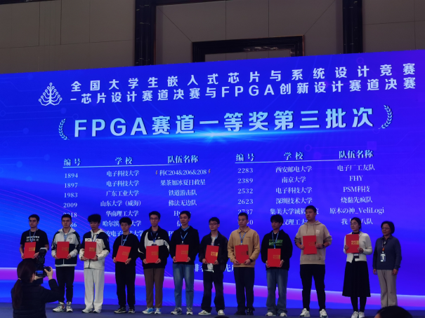5支参赛队伍凭借卓越的创新能力和扎实的专业知识,在这场汇聚全国高校精英的赛事中脱颖而出,取得了令人瞩目的成绩,获FPGA创新设计赛道紫光同创杯全国一等奖1项,高云杯全国一等奖1项、二等奖2项,AMD杯全国二等奖1项,芯片设计赛道全国三等奖1项,并获“优秀组织奖”称号。