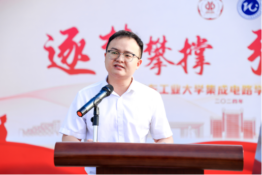 教师代表李冠祺老师分享了自己在国外留学的见闻,学成归国的他意识到只有中国共产党才能带领我们走向更美好的未来,于是坚定的加入了中国共产党。李老师还结合前国内外形势,分析了集成电路产业在新时代的长征路上的机遇与挑战,勉励全体毕业生团结一心,把握机遇,带着所学的知识和技术,积极参与到中国集成电路产业的发展中去,为推动国家科技进步贡献自己的力量。