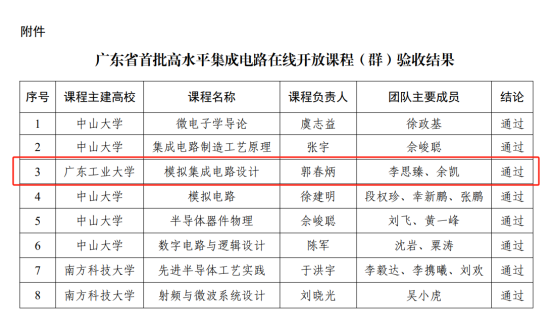 郭春炳教授负责的《模拟集成电路设计》通过验收,获“广东省线上一流本科课程”认定。