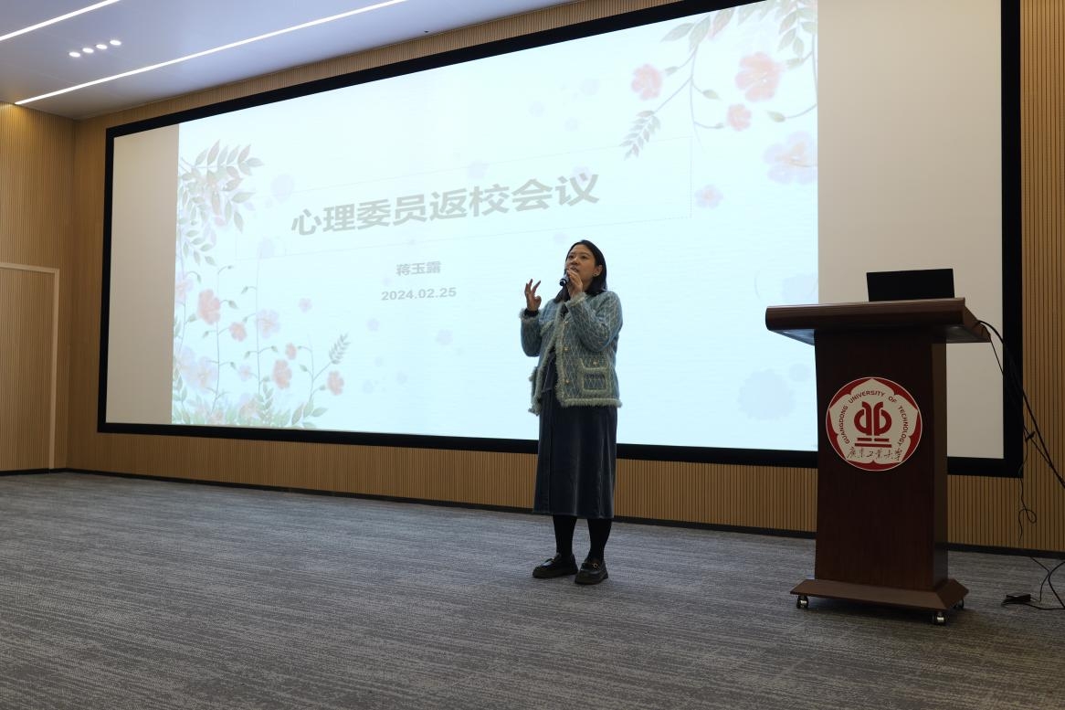 联合生态环境与资源学院在理学馆224召开了心理委员返校会议。会议邀请了心理中心蒋玉露老师进行专题讲解,会议由蒋佳琪老师主持。
