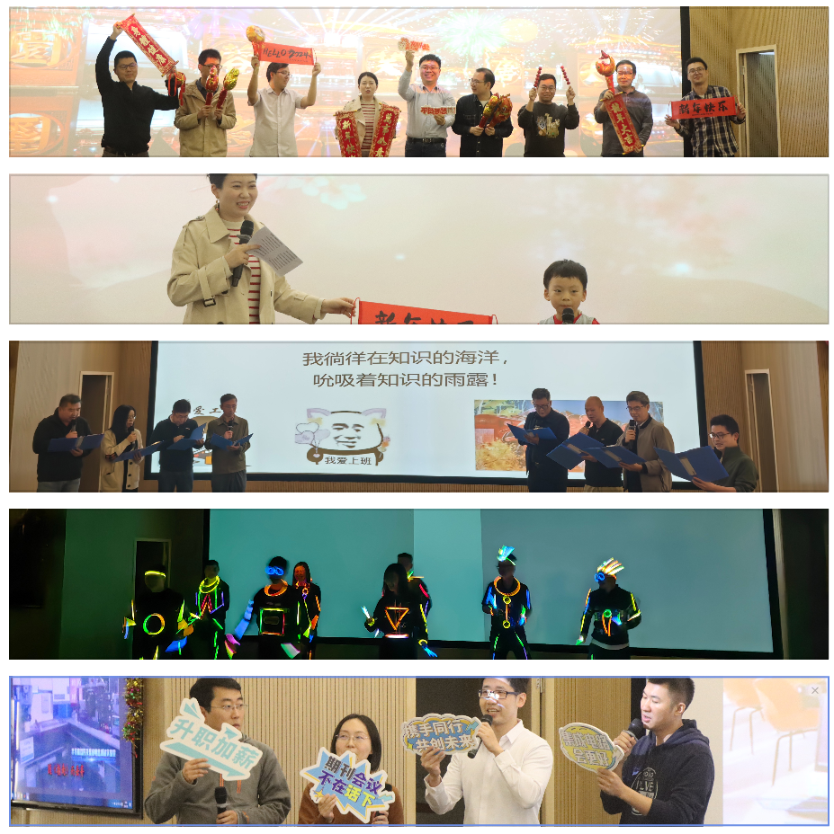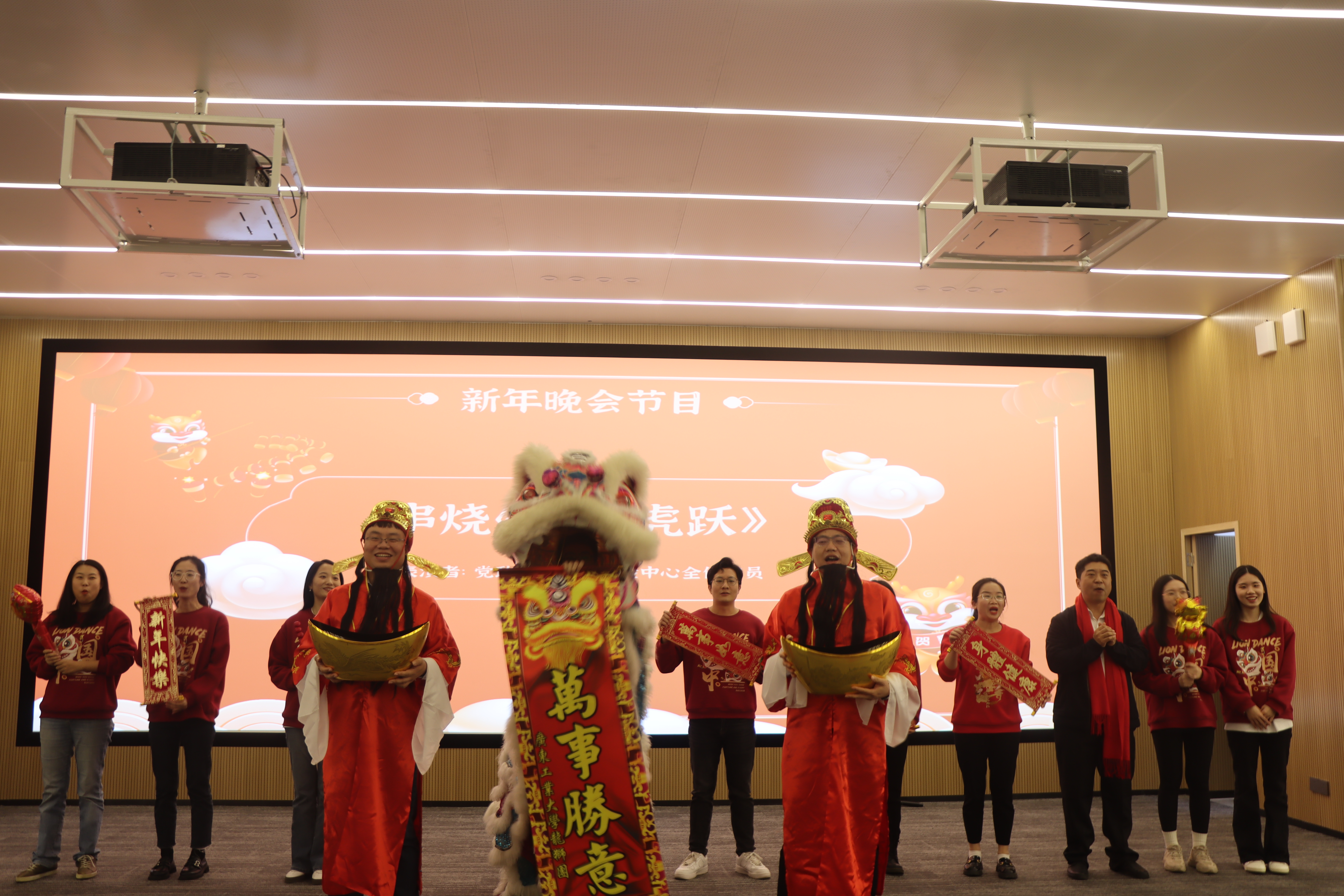 最后,学院教师全员参与了迎春联欢活动,共同呈献了内容丰富、形式多样的文艺节目:《灯火里的中国》《一路生花》《长江之歌》《我爱上班》《健康歌》《明天会更好》《龙腾虎跃》,青春活力的舞蹈、幽默风趣的朗诵、洪亮激扬的歌声、欢快的亲子表演,锣鼓喧天、狮舞雄风,压轴节目舞狮表演把会场气氛推向高潮。辞旧迎新,洗去一年征尘;扬帆起航,重整行装再出发!