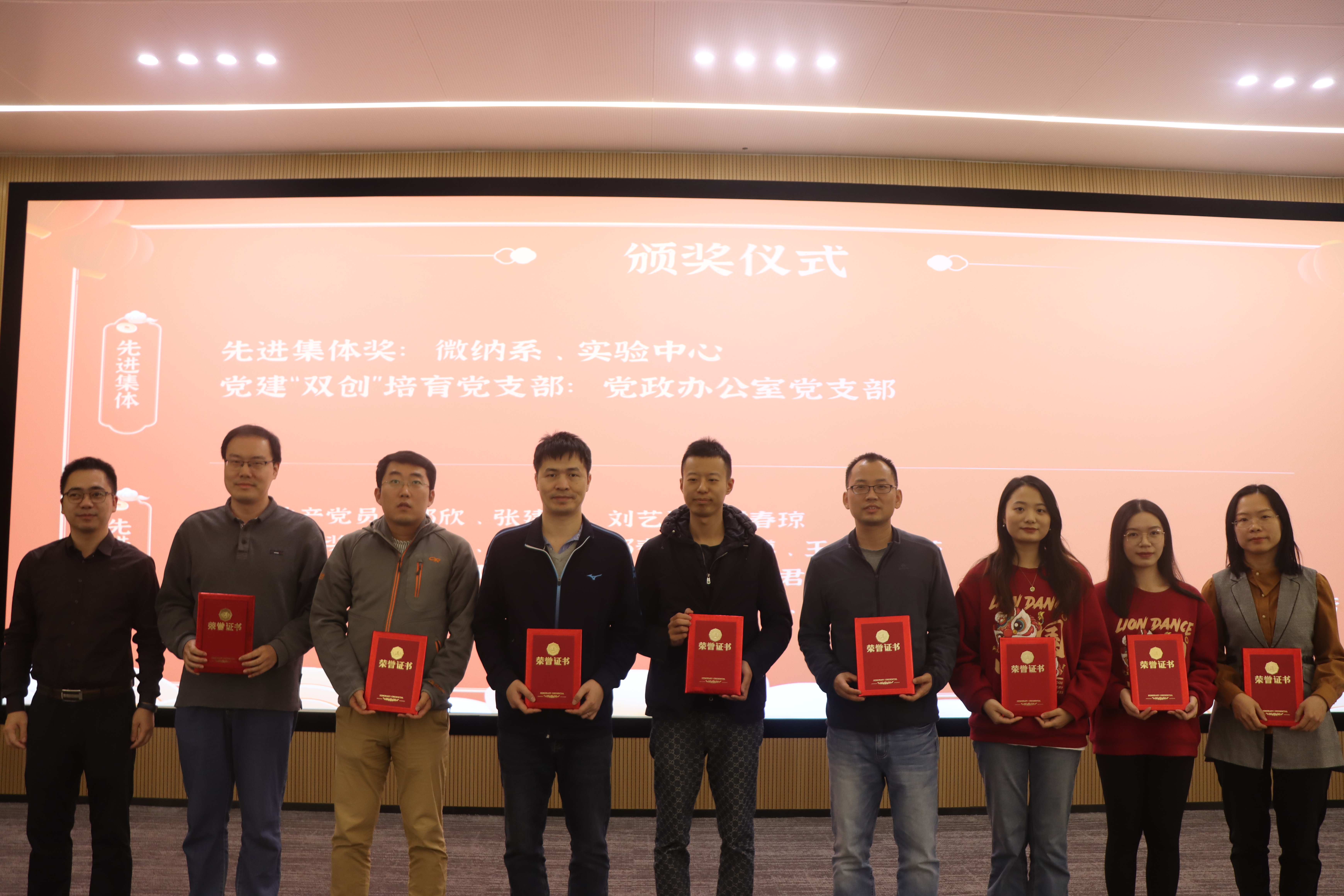 随后,大会进行表彰仪式,学院对2023年在各项工作中作出突出贡献的优秀个人和先进集体进行表彰奖励,分别授予先进集体、“双创”培育党支部、优秀共产党员、学院发展特别贡献奖、教书育人奖、优秀创新成果奖等荣誉称号。