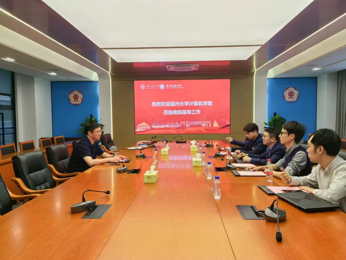 蔡述庭对温州大学计算机学院一行的到访表示热烈欢迎,并从人才培养模式、师资队伍引育、平台项目支撑、校企协同育人等几个方面介绍了国家现代产业学院建设的基本情况。