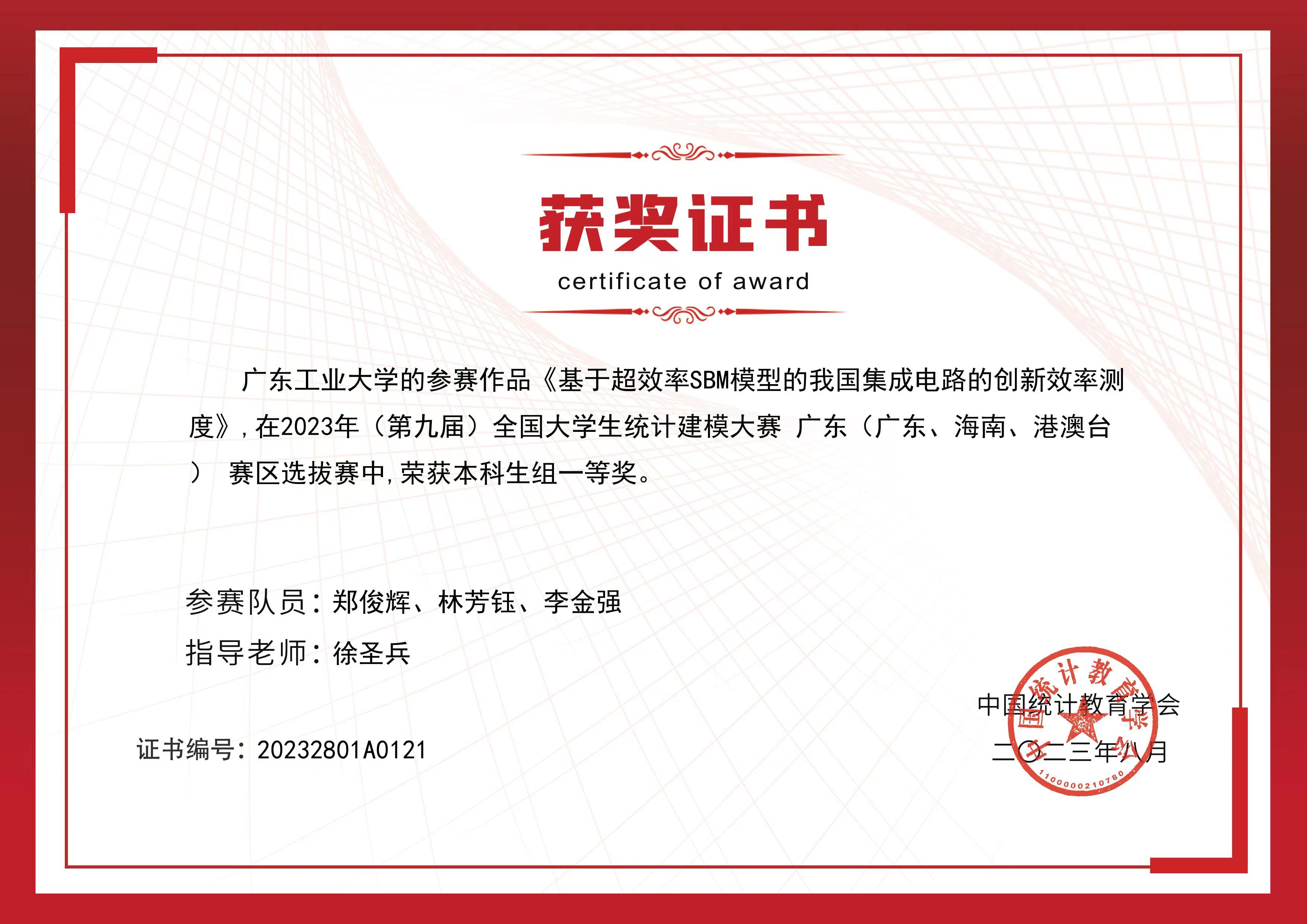 微电子科学与工程的郑俊辉同学作为团队主要负责人在2023(第九届)全国大学生统计建模大赛中斩获国家级二等奖(全国获奖比例约为1%)、省级一等奖!
