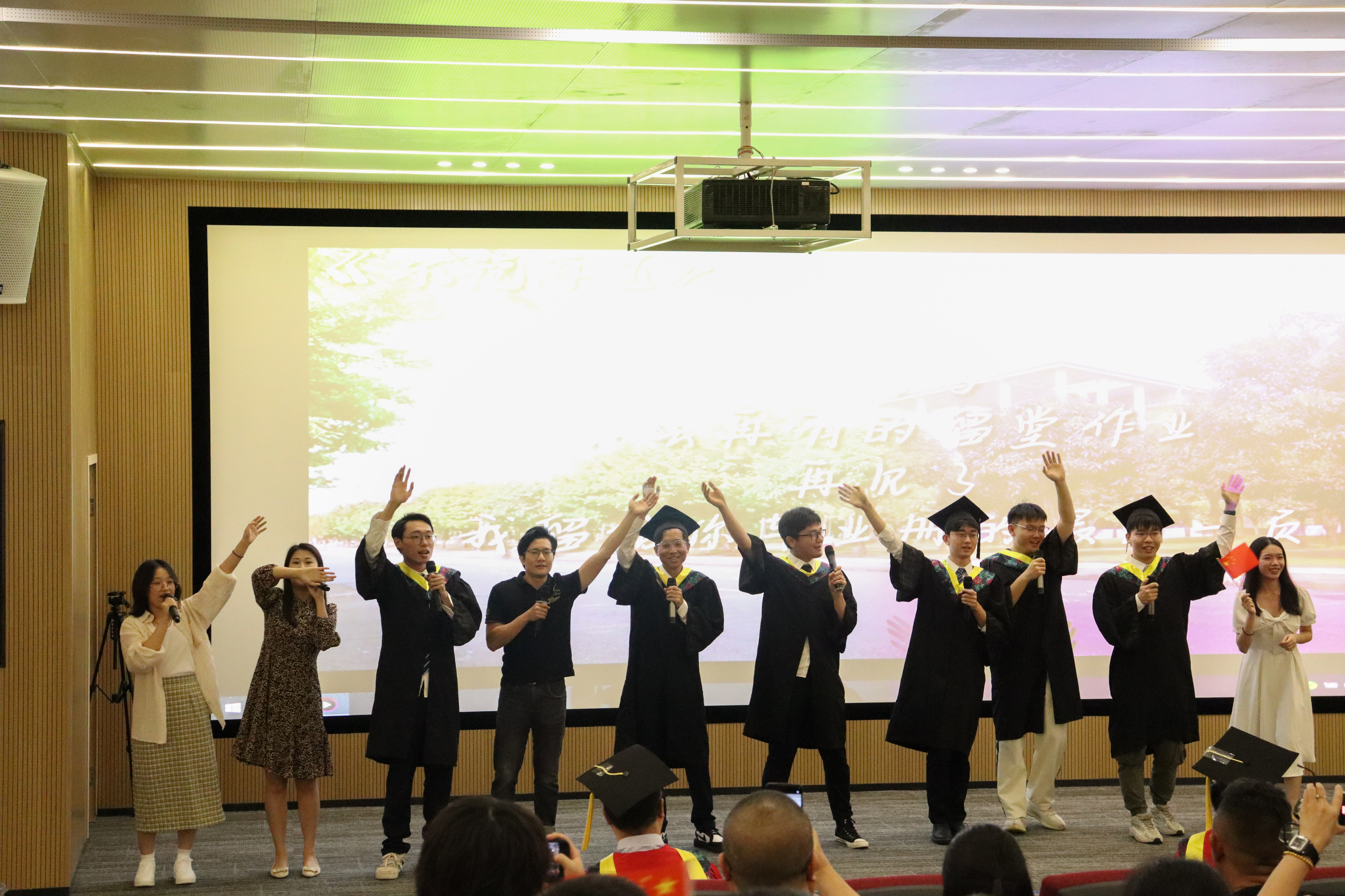教师代表符哲带领全体毕业生回顾了大学四年生活的点滴,表达了对他们的不舍与祝福,希望毕业生们无论未来走向何方,境遇何如,永远保有一颗赤子之心,胸怀理想主义,同时躬身脚踏实地。