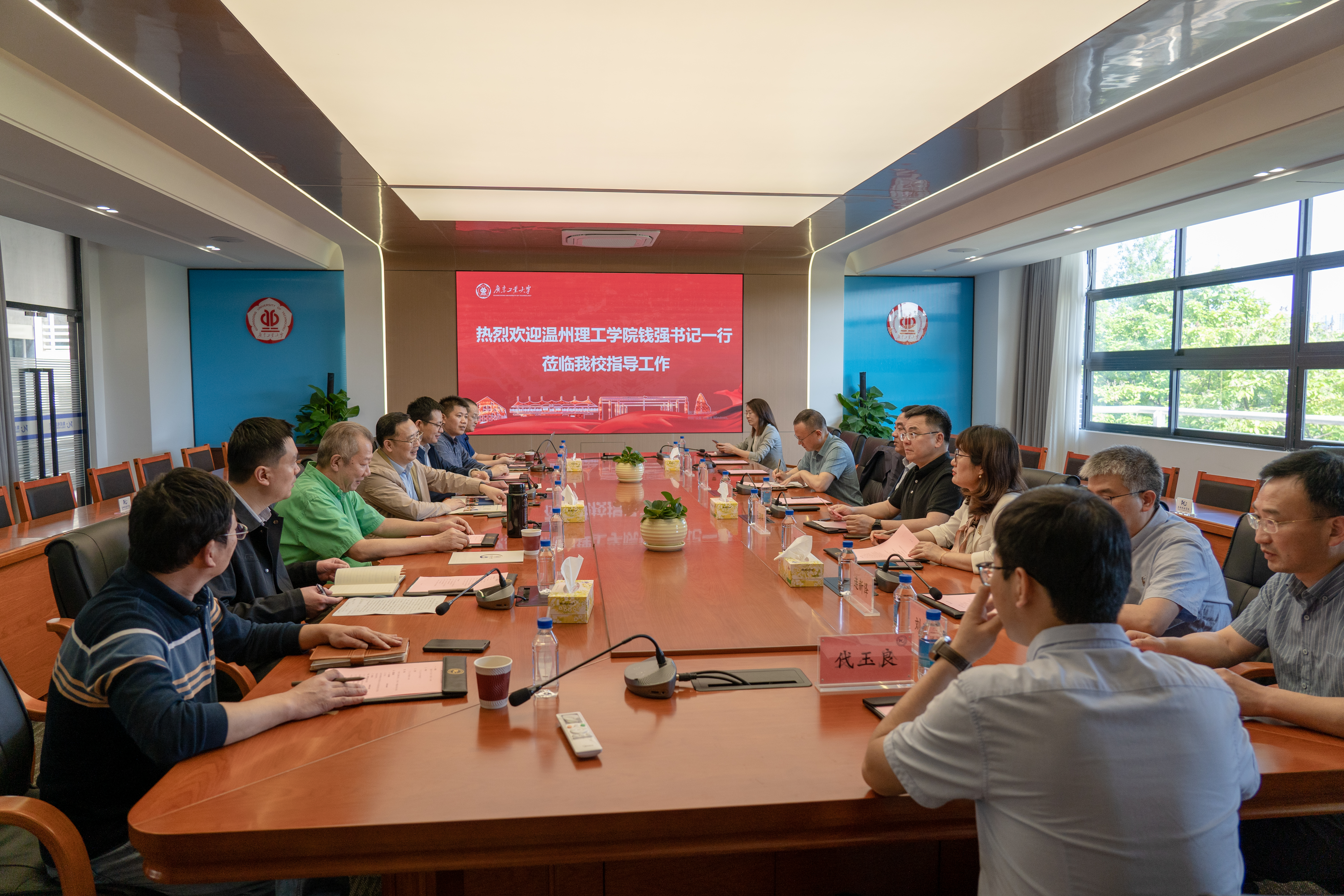 余林代表学校对温州理工学院的来访表示热烈欢迎,介绍了学校办学特色、学科建设、人才培养等方面的做法和思路。他指出,广工坚持高质量推进“1+2+3”攀撑计划学科提升工程,努力对接国家发展战略,服务区域经济社会发展需求,为广东的高质量发展持续输出面向未来的高素质创新人才,提供科技支撑和智力支撑。