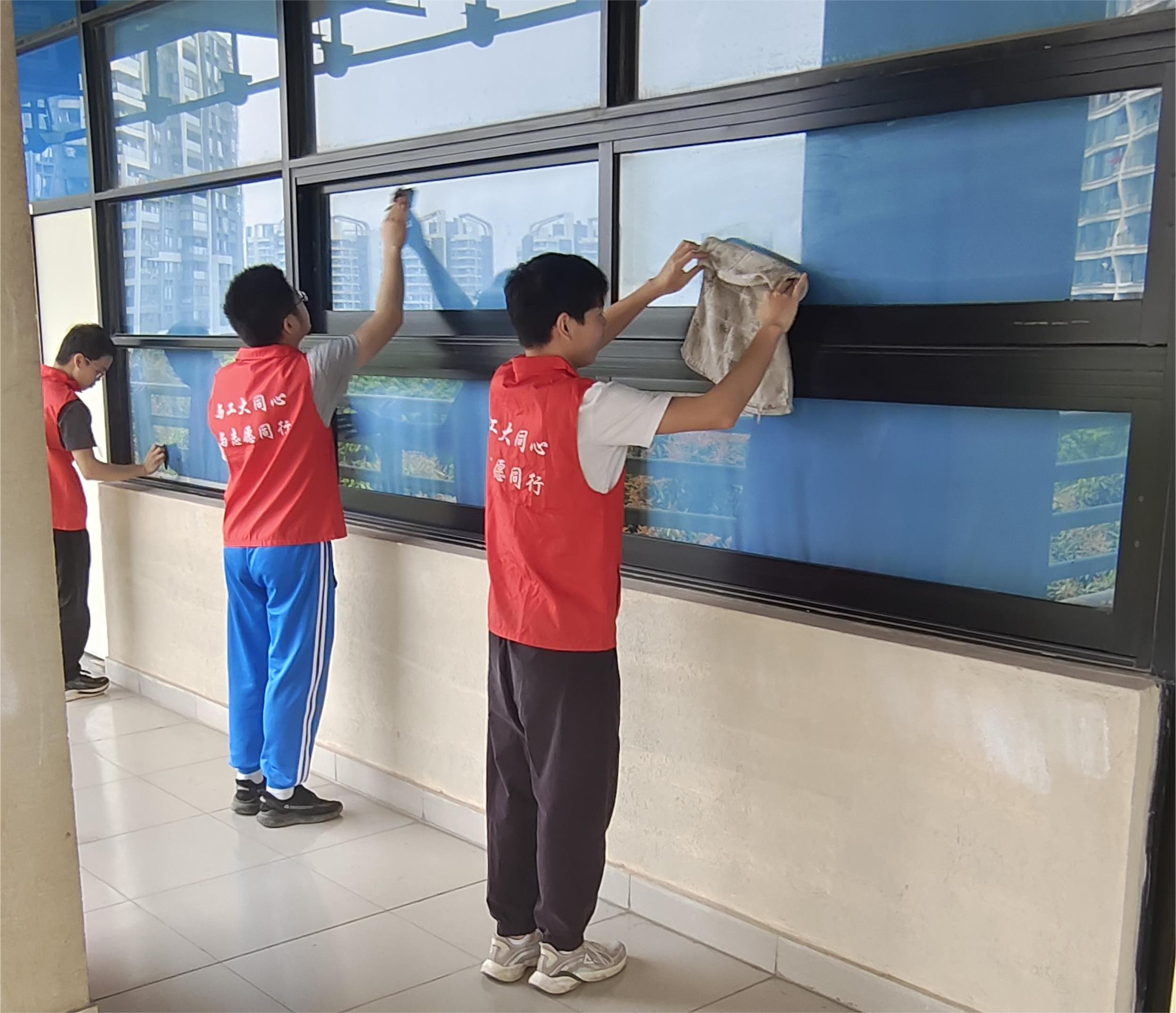 40名志愿者对教学2号楼进行了清洁,他们细心地擦拭每一扇窗户,用心地清扫每一片垃圾,大家团结合作、明确分工,充分发挥了不怕苦、不怕累的服务精神,用自己的劳动和汗水为美丽校园贡献了自己的一份力量。
