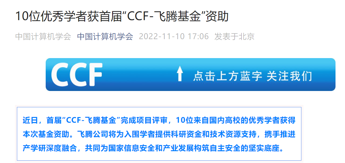 11月10日,中国计算机学会发布首届“CCF-飞腾基金”项目评审结果公告,high漫画