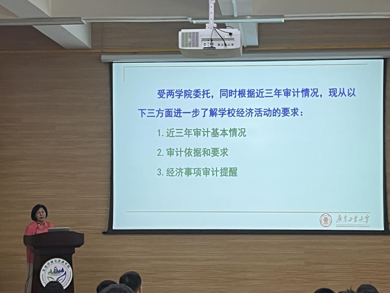 紧接着,邓彦作经济事项的审计提醒报告,从校内审计过程中出现的问题出,给出了风险警示并提出了管理建议。建议大家自查自纠,全面开展整改,切实解决管理工作中存在的问题,用扎实有效的财务审计工作推动学校事业发展。