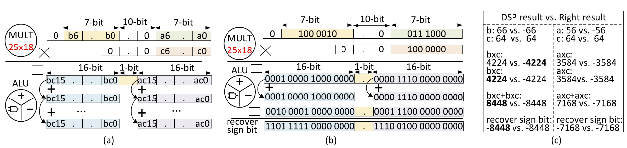 针对已有研究中DSP未能实现两个有符号INT-8乘法和导致其应用受到限制的问题,以及DSP只实现乘法导致需要额外LUT硬件来实现加法导致能量消耗大的问题,作者提出了DSP实现两个有符号INT-8乘法和加法的优化方法。基于该方法本文提出了一个轻量级神经网络加速器(TiNNA)。与在相同Xilinx ZC706 FPGA上最先进的AI加速器相比,TiNNA实现了1.7~7.3倍的DSP利用率。与其他基于FPGA的加速器相比,TiNNA实现了3.56倍的能源效率。