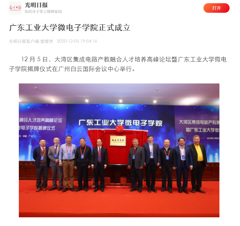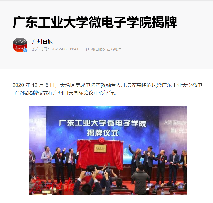 微电子学院揭牌仪式在广州白云国际会议中心举行。