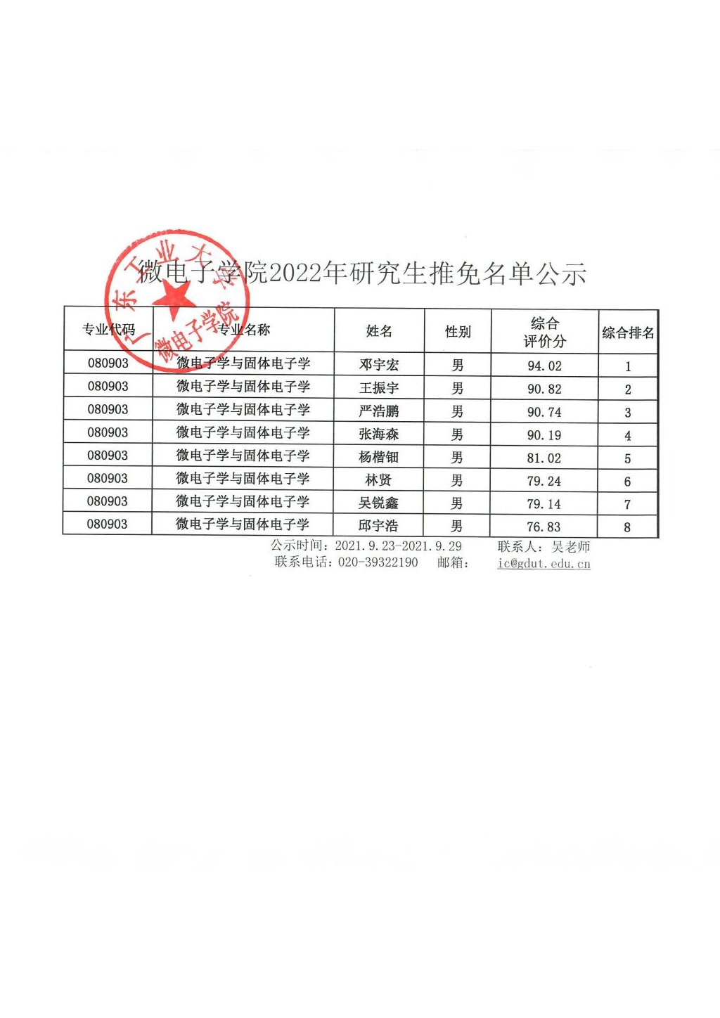 下一条:微电子学院2022年研究生申请推免综合排名结果公示