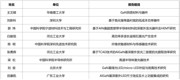 分论坛主席:魏同波-中国科学院半导体研究所、王文樑-华南理工大学