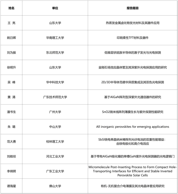 分论坛六:光电探测与微纳光电材料、器件及应用